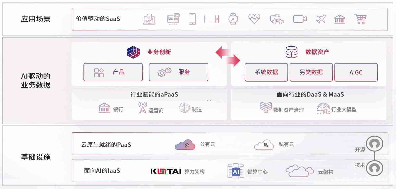 数字时代,,,围绕企业数字化转型的关键要素,,K豆钱包数码开创性的提出数云融合战略和技术体系框架,,着力在云原生、、数字原生、、、AI原生和信创产业上架构产品和服务能力,,,,为处在不同数字化转型阶段的快消零售、、、汽车、、、金融、、、、医疗、、、政企、、教育、、、、运营商等行业客户提供泛在的敏捷IT能力和融合的数据驱动能力,,,,构建跨界融合创新的数字业务场景和新业务模式,,助力企业级客户建立面向未来的核心能力和竞争优势,,,,全面推动社会的数字化、、、、智能化转型升级。。